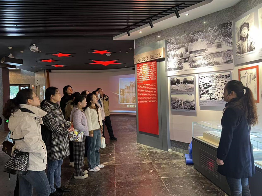 活动当天,参与人员怀着崇敬的心情抵达王若飞故居,在故居管理处讲解员的带领下,开启了一场 “追寻初心” 的红色之旅。首先,支部全体党员同志在展馆前瞻仰,重温革命历程:在故居陈列馆的 8 个展区,从“走出大山寻求真理”的留日赴法经历,到“狱中斗争坚守信仰”的顽强意志,再到“参与抗战投身建国”的使命担当,讲解员结合实物展品(如王若飞同志使用过的书籍、信件)、历史照片与场景生动地还原了王若飞同志为人民解放不懈奋斗的一生。参与人员认真聆听每一段史料,不时驻足凝视展品,轻声交流感悟,仿佛置身于那个风雨如晦却热血沸腾的革命年代。